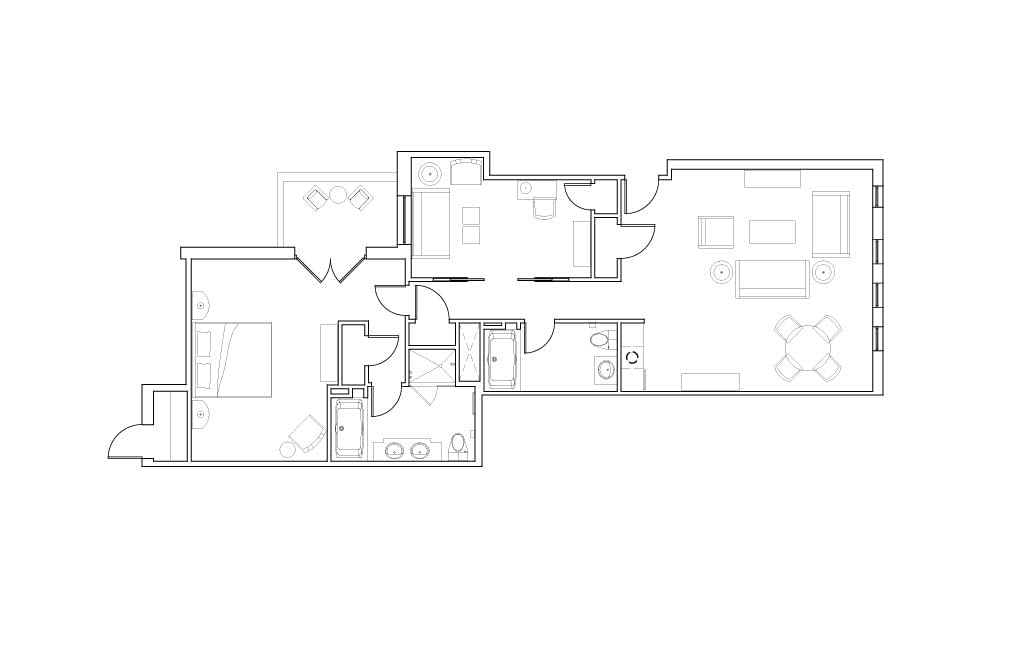Each expansive 1,200 square foot suite features one bedroom and one bath, as well as a separate living room for relaxing and entertaining, and a separate den equipped with a sleeper sofa.